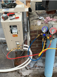 Net als bij een IGS – ingebruikstelling worden de volgende werkzaamheden aan het einde van de installatie gedaan; koppelingen aansluiten, vaccumeren, drukcontrole en koudemiddel inregelen.